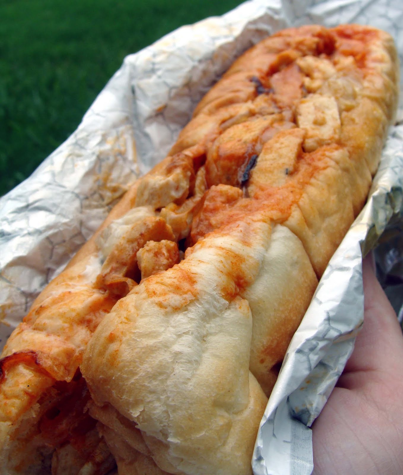 We did get to stop for lunch in Charlotte North Carolina. The first stop was at The Blushing Bake Shop, where I was surprised with some vegan cupcakes. We had a few chocolate peanut butter cupcakes and some red velvet. This was a very cute little place and they had some awesome looking treats. The cupcakes were a great first stop on the trip. They were unexpected and fantastic, not to mention, we got six and I had a bedtime snack!Then we were off to ZiZi's Take Out to grab some sandwiches. They only offered take out which was disappointing since we did not really have a place to eat. Eventually we had to pull over on the side of the road and eat in the grass because the sandwiches were messy. They were decent but nothing to sing home about. I got a chicken parm-less, Ashley got a Bufallo chicken sandwich and we shared chicken nuggets. It was a tasty but I was mildly disappointed that the same nuggets that we had as an appetizer, were in my chicken parm-less sandwich. I understand the economical aspect of this for a business but it is still nice to be able to mix it up. It still resulted in a solid vegan lunch spot and a nice opportunity to stretch the legs.